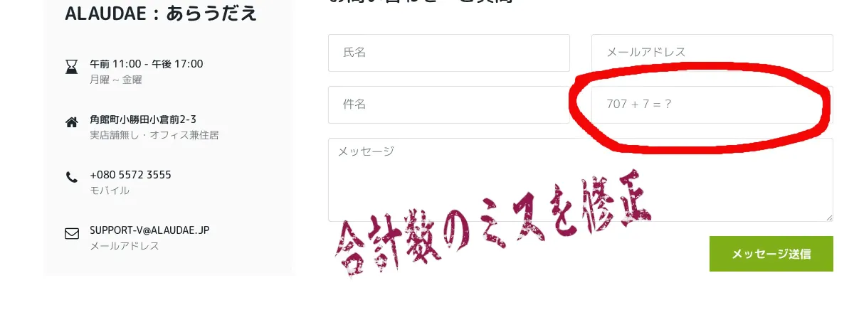 To prevent spam and strengthen security, we have set up a field in the inquiry form where you can input the total number of simple calculations, but due to an error in inputting the total number on the administrator's side, we were unable to send it.