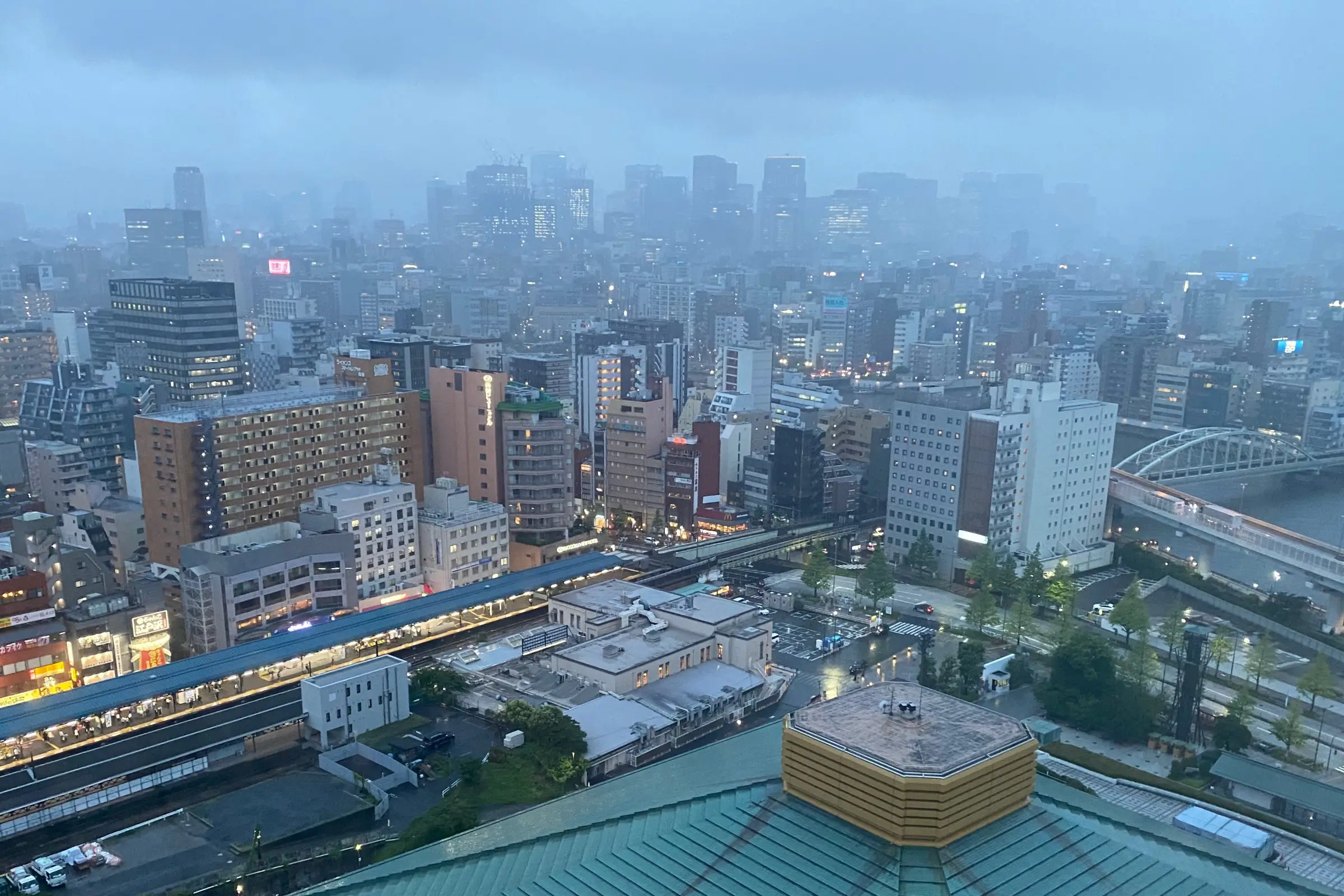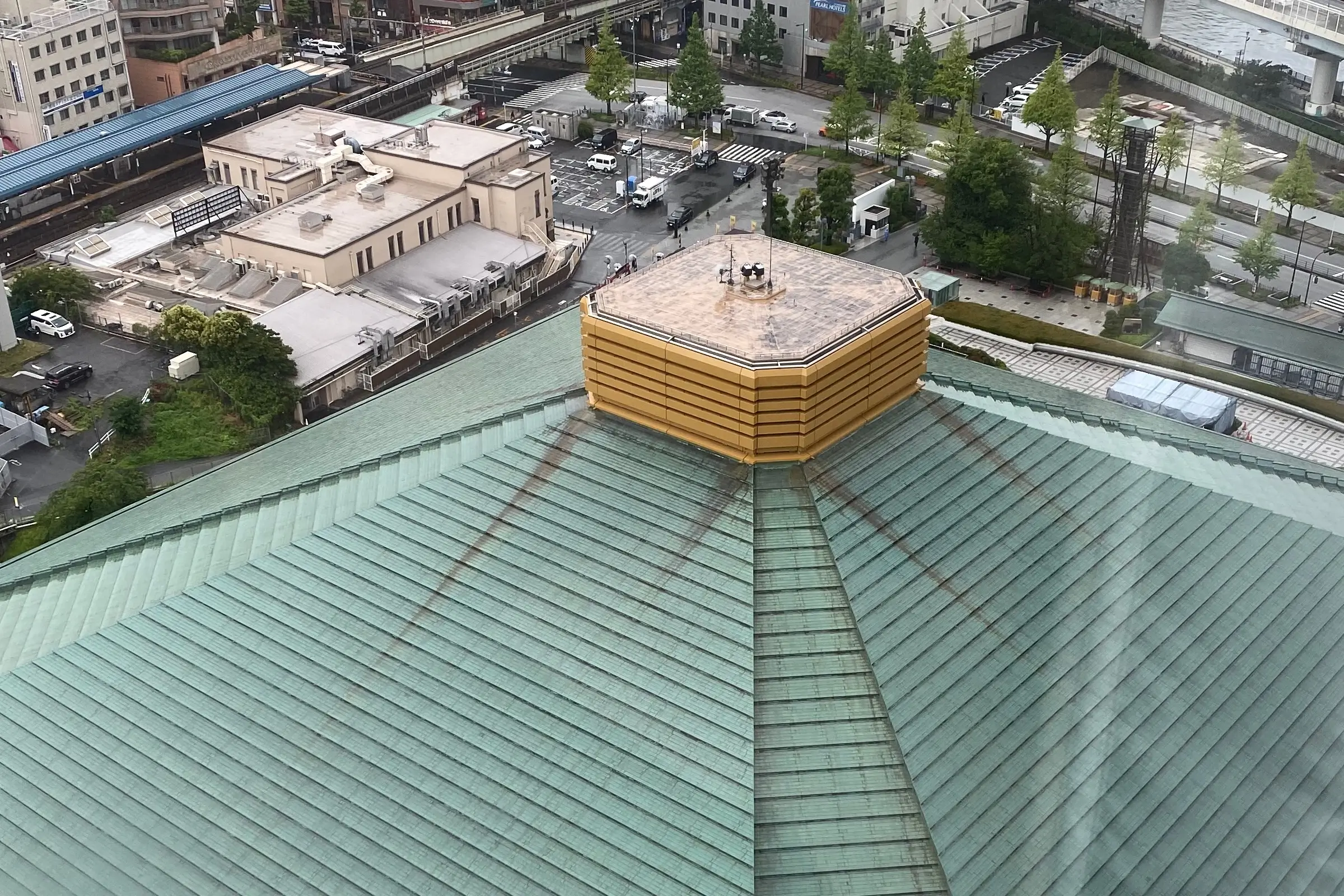 タクシーが向かう宿泊先は"アパホテル&リゾート両国駅タワー"。一度も両国国技館に行ったことがない、オフクロ様が喜ぶだろうとの理由で選ぶ。(相撲大好きだった親父が居ればもっと喜んだろうな)入室後、カーテンを開けたら目の前に両国国技館の屋根が現れた。まさかこんなに近いとは思いもしません。天気さえ良ければ、周辺を散策したかったのですが、新幹線からホテルまで普段歩かない距離を歩いたせいで体が疲れ果てていて、この雨にはある意味助けられたとも言える。